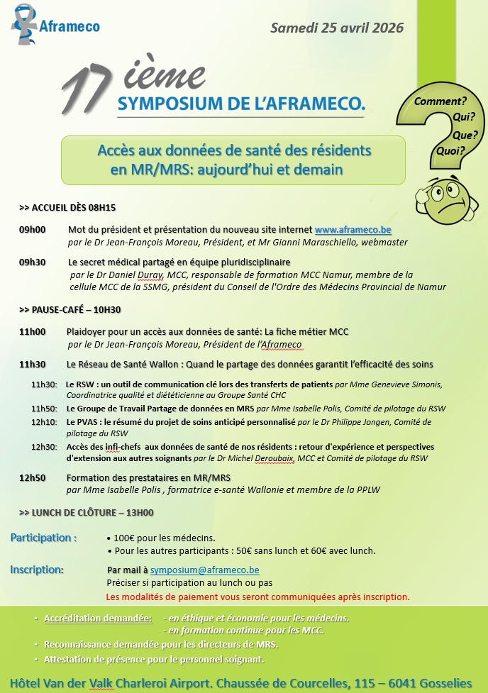 25 AVRIL 2026 - SYMPOSIUM AFRAMECO: Accès aux données de santé des résidents en MR/MRS: aujourd’hui et demain